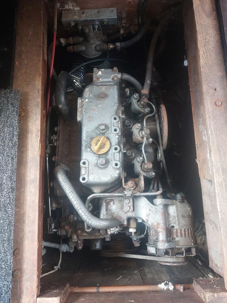 Yanmar 3 cylinder diesel. Drive type: shaft. Twin batteries charged from the engine. Shore power. 350w solar panel with trickle charger.