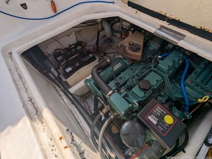 This Sealine Senator 320 is fitted with a single Volvo Penta engine with Morse controls. This engine is powering an outdrive with a duo 3-bladed propeller. This engine is supplied by a 200-litre fuel tank.