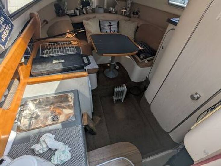 This Sealine Senator 230 offers four berths in one cabin, with 5’8” headroom throughout.