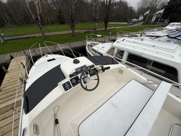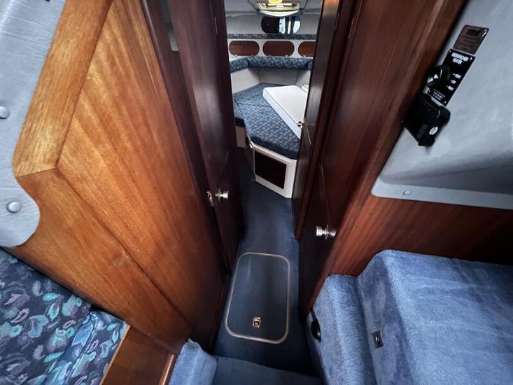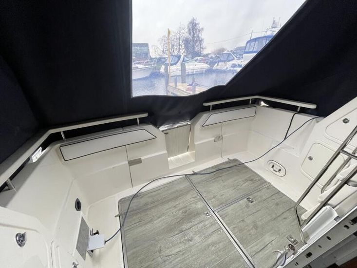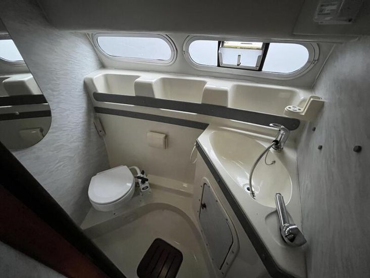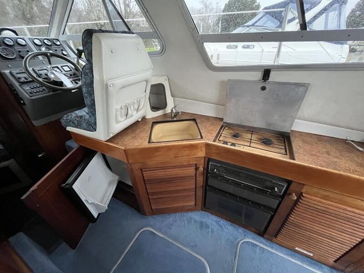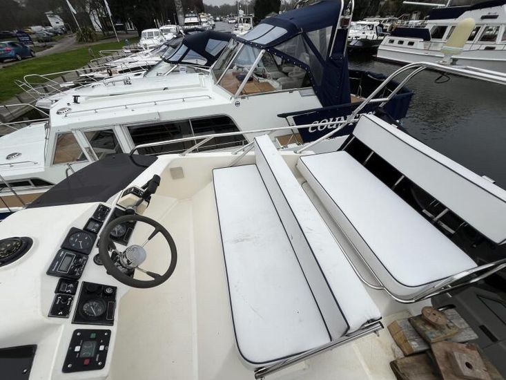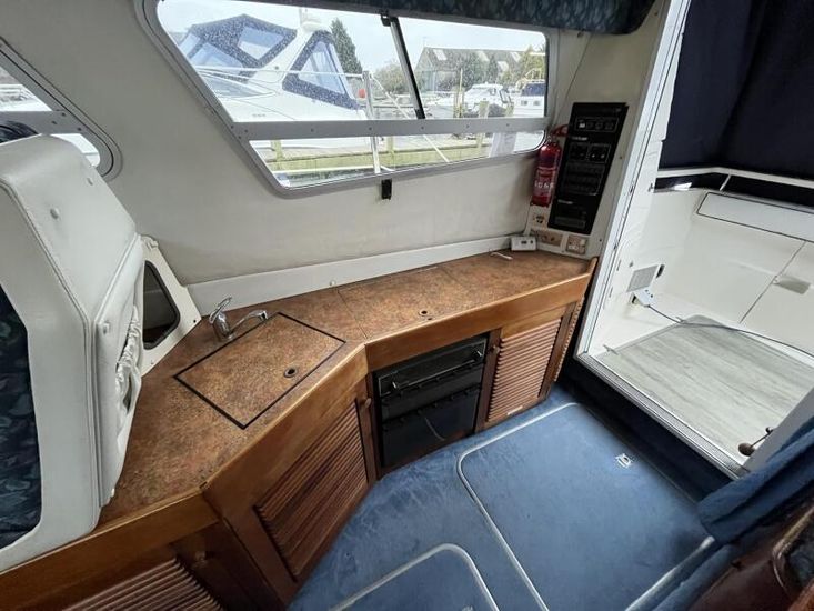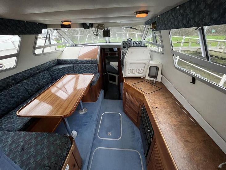 Sealine 305 Statesman - 1989 – Powered by 2 x Volvo AQAD31 140hp diesel engines through sterndrives. Up to 6 berth accommodation over two cabins and saloon with 1 x toilet and shower. Specification including Warm air heating, electric windlass, trim tabs, shore power, battery charger, galley with sink, oven, hob, grill and refrigerator. Generous accommodation in an entry size flybridge with diesel economy. An ideal introduction in to offshore boating. NYA Stock - Sold with 3 month engine & gearbox warranty.